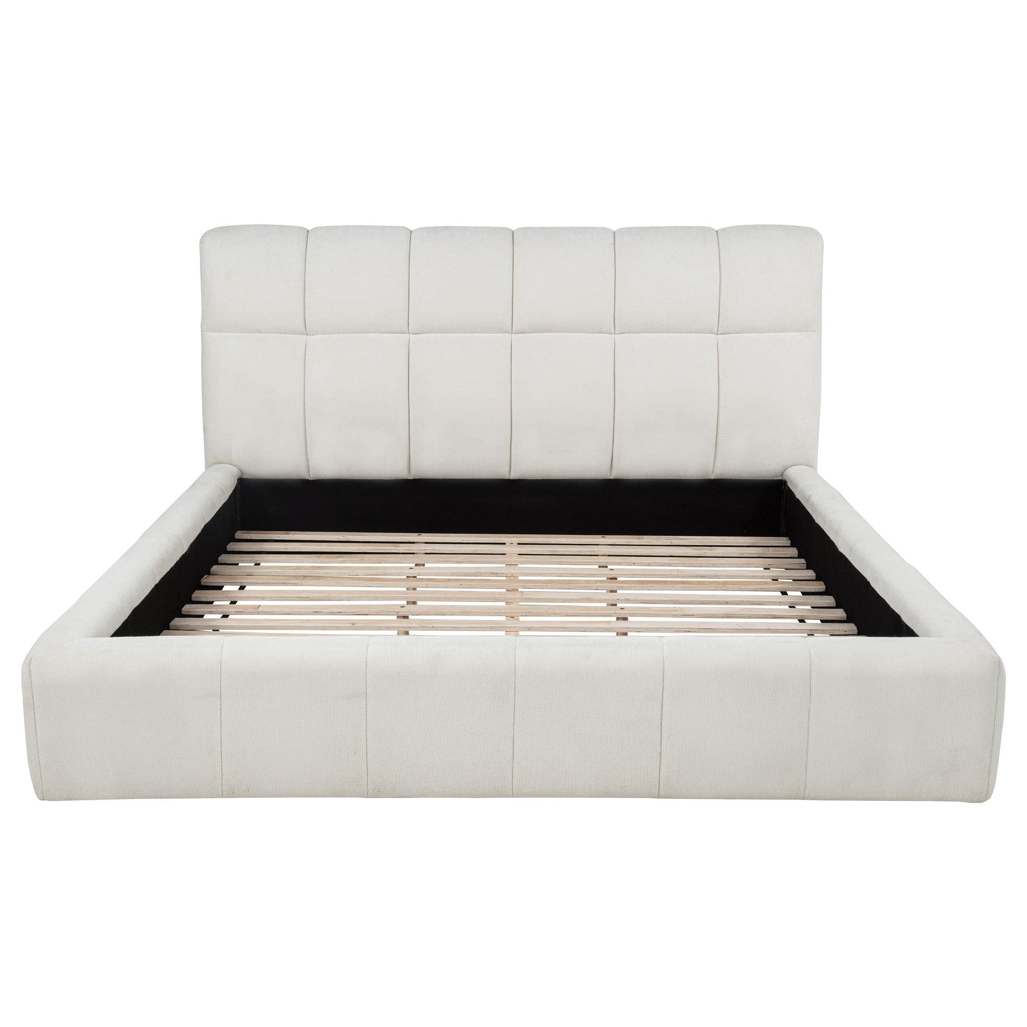 Tailored with bold lines and soft texture, this upholstered platform bed blends comfort with quiet strength. Vertical channel tufting runs along the headboard and foot rails, adding dimension and rhythm...