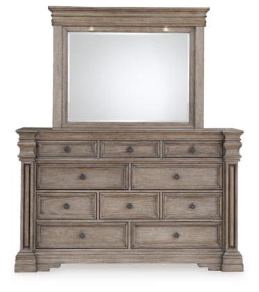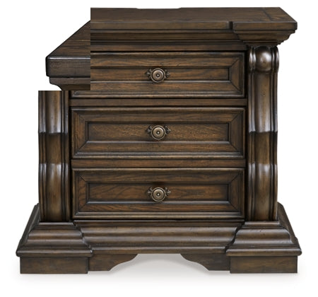 With opulent traditional charm, this bedroom group will make a great addition to any home. The collection has copious details such as bun feet, ornamental pilasters, marble tops, and crown...