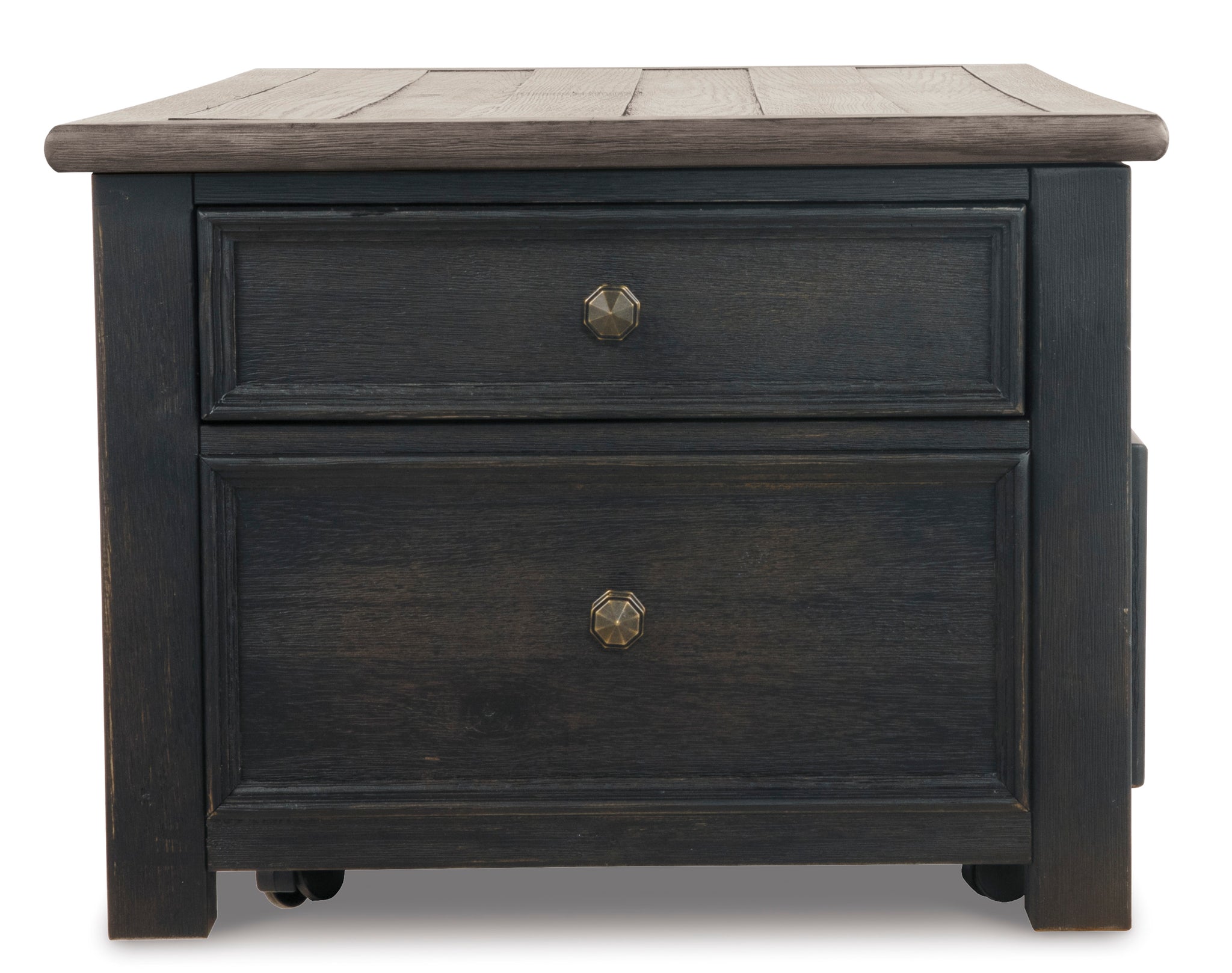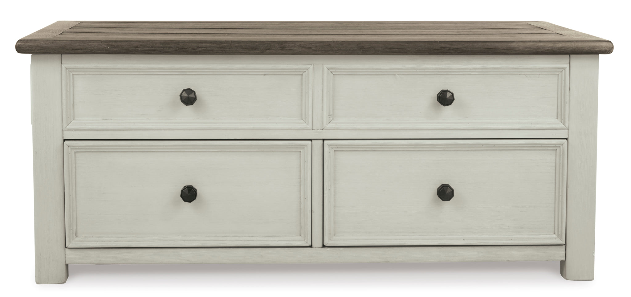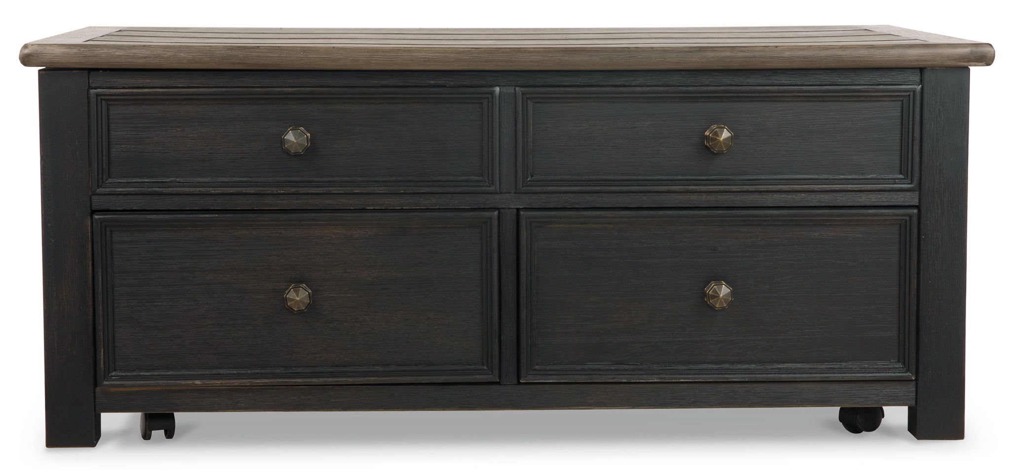 Double take. Sporting a two-tone finish, dual-sided lid design and expansive storage space, this square coffee table takes the art of rustic farmhouse living to a new level. Designer touches...