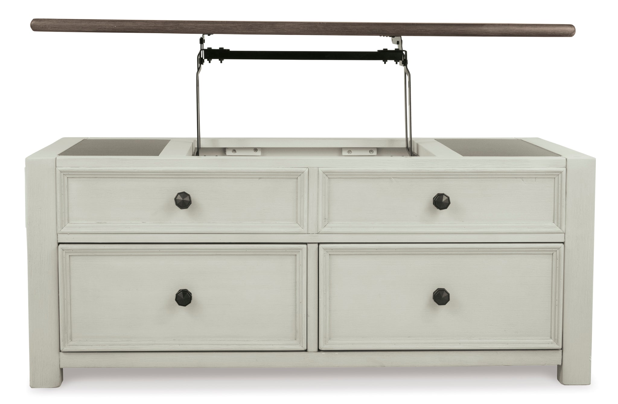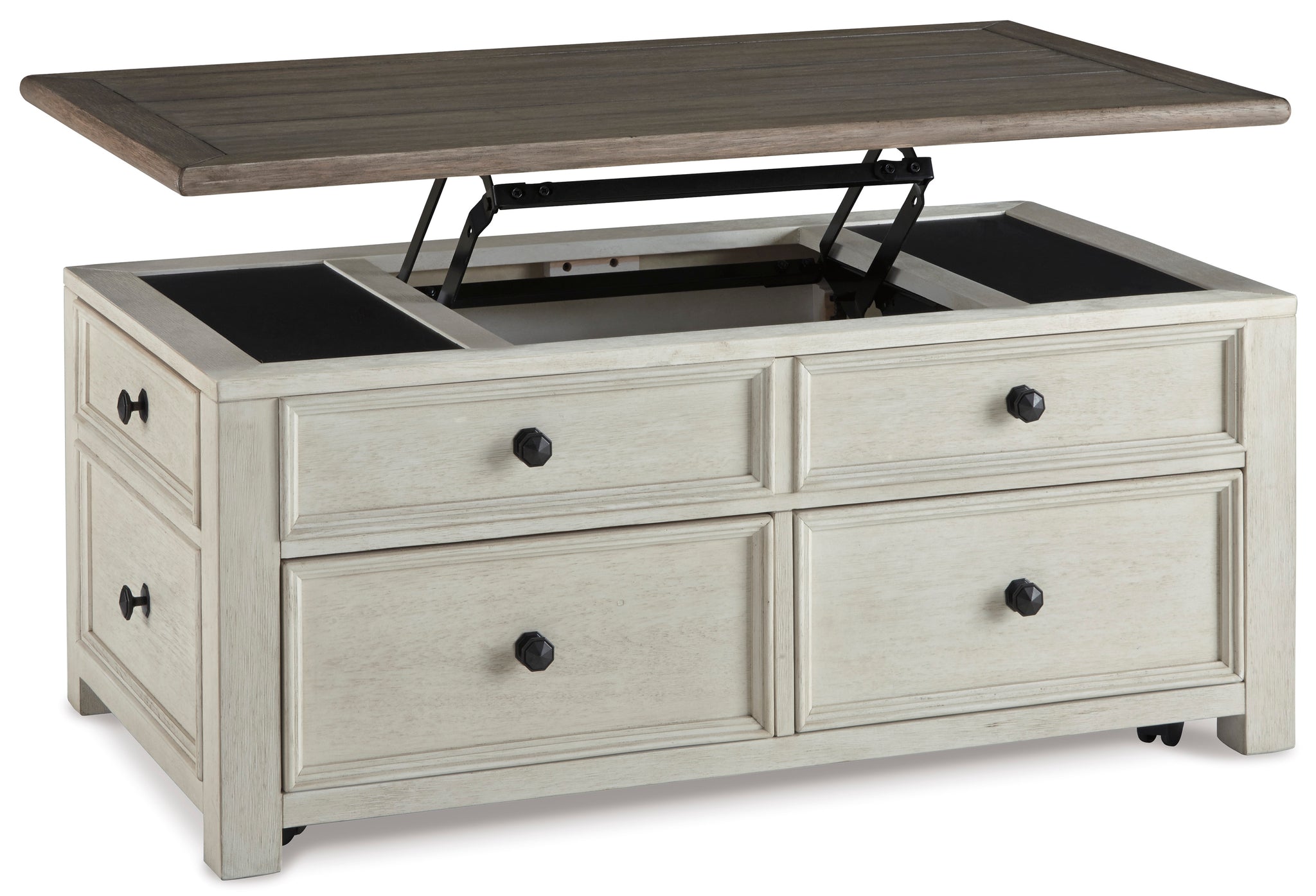 Combining a two-tone finish with a gently distressed texture produces one very distinctive lift top coffee table. Whether your style is modern farmhouse or urban industrial, this coffee table with...