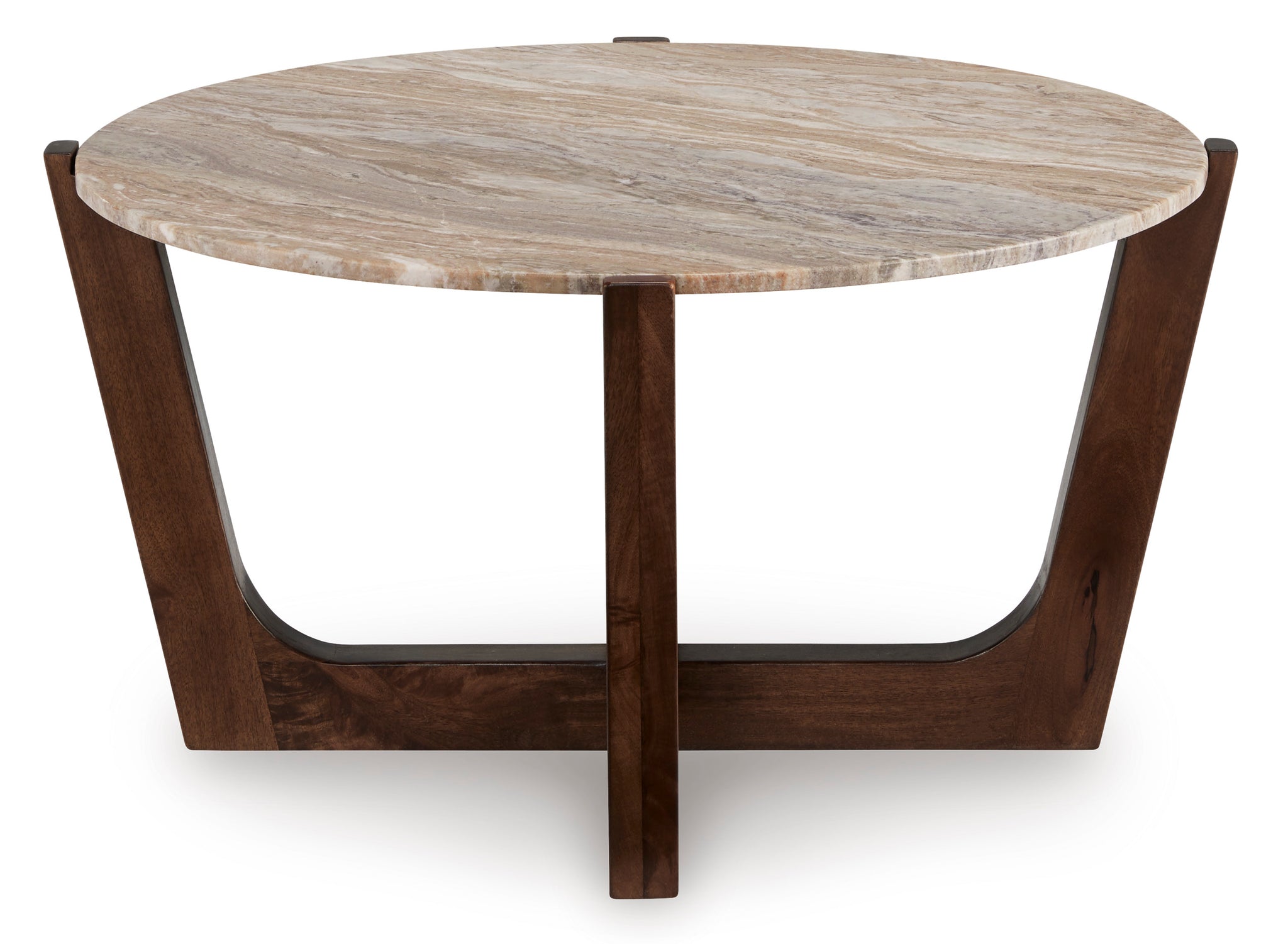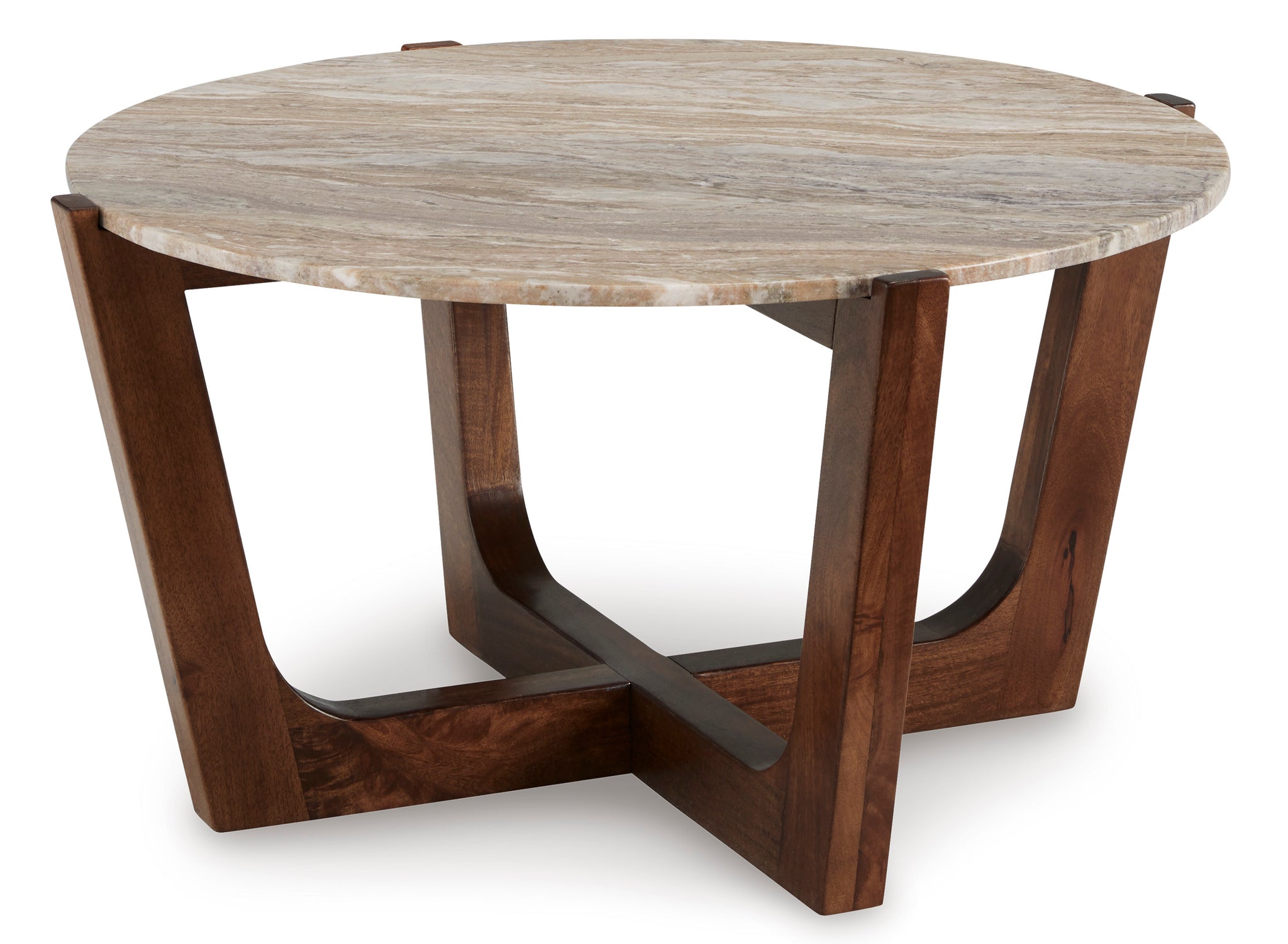 Jason Round White Marble Top Coffee Table - Honey Brown
