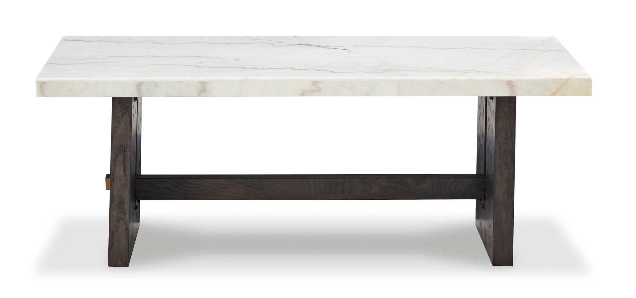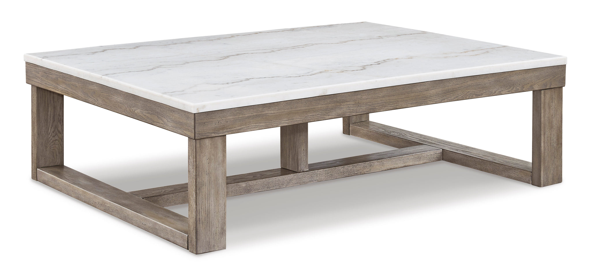 This coffee table is simple in design but big on style. Finished with a trend-right grayish brown wood tone, its bold, blocky profile and natural marble top are timeless classic...
