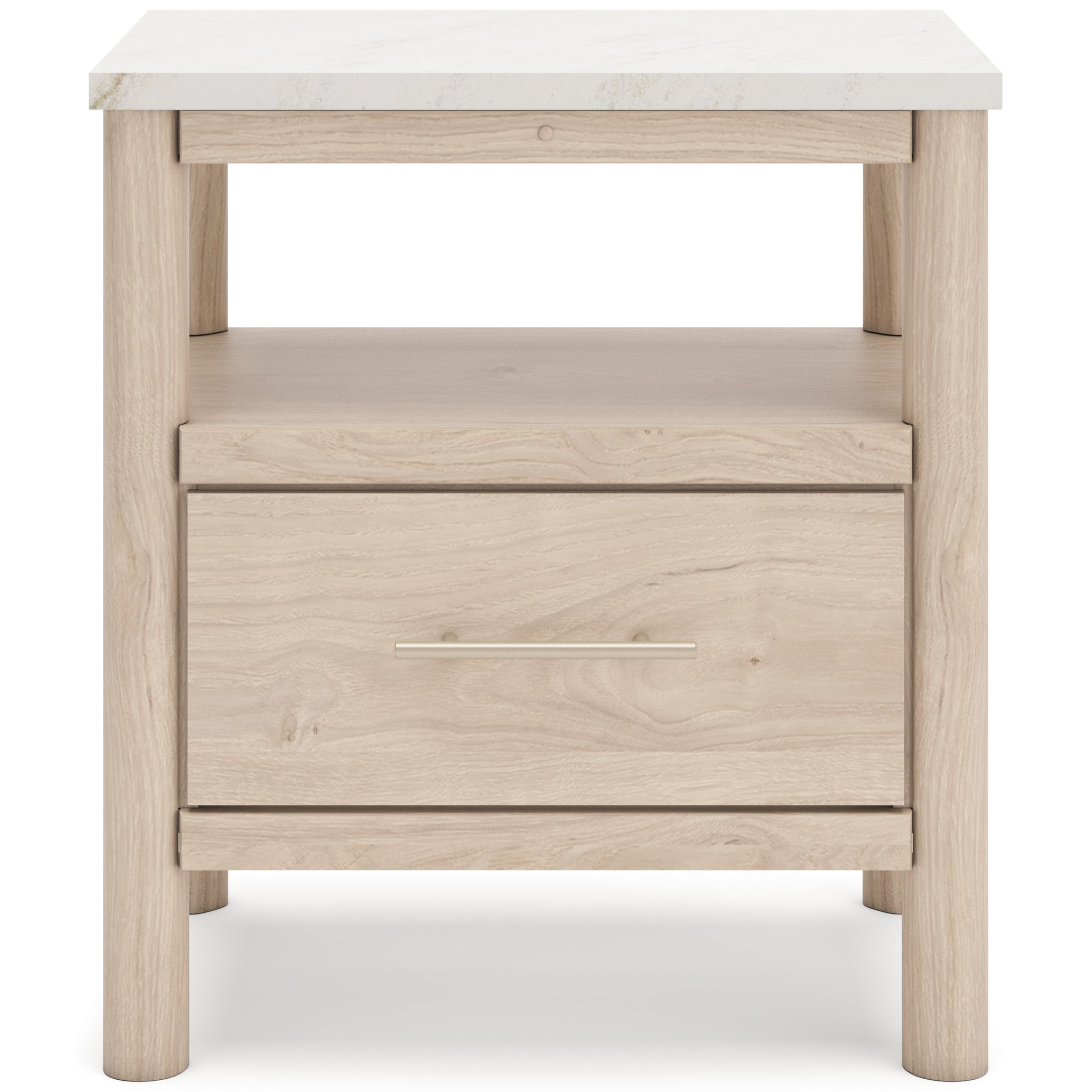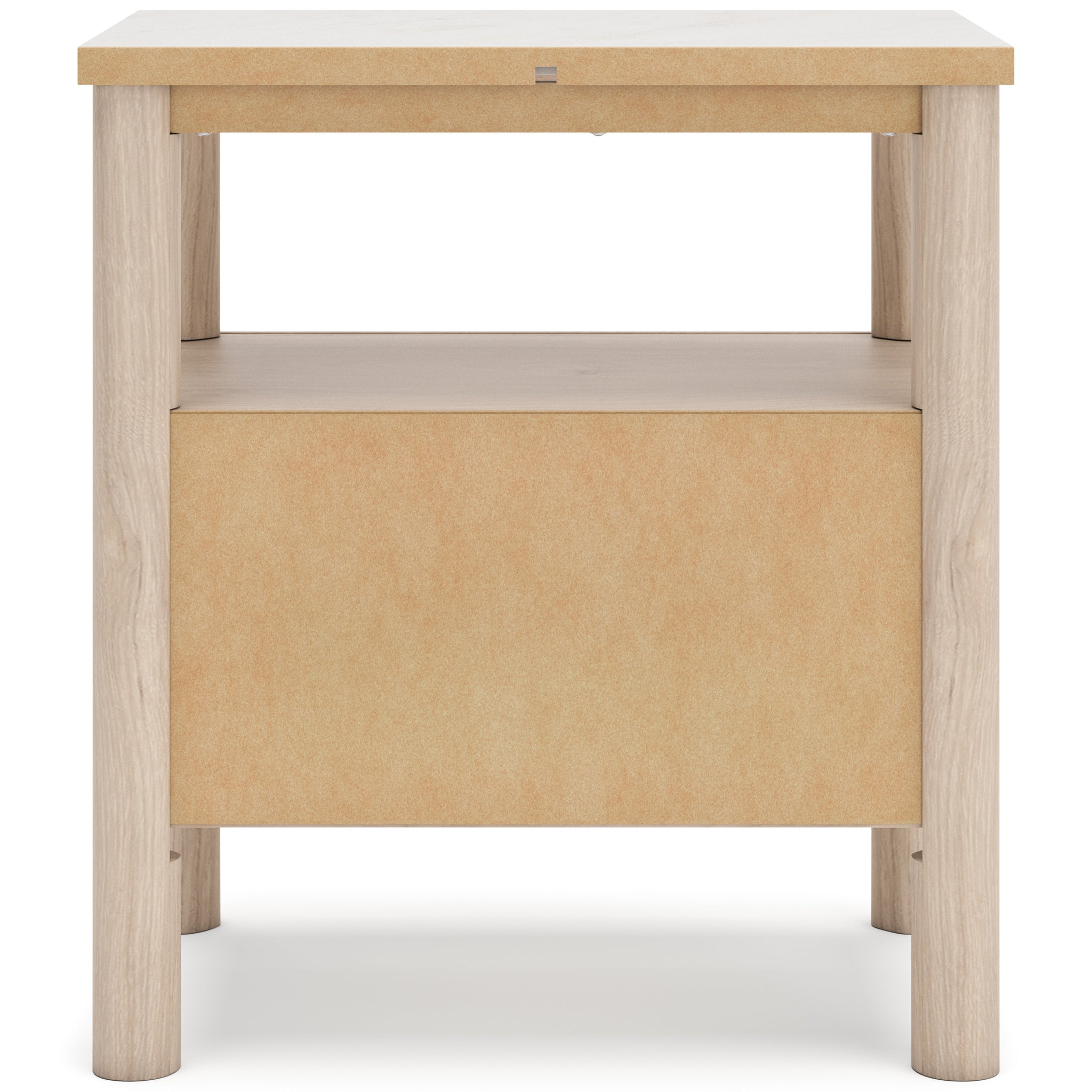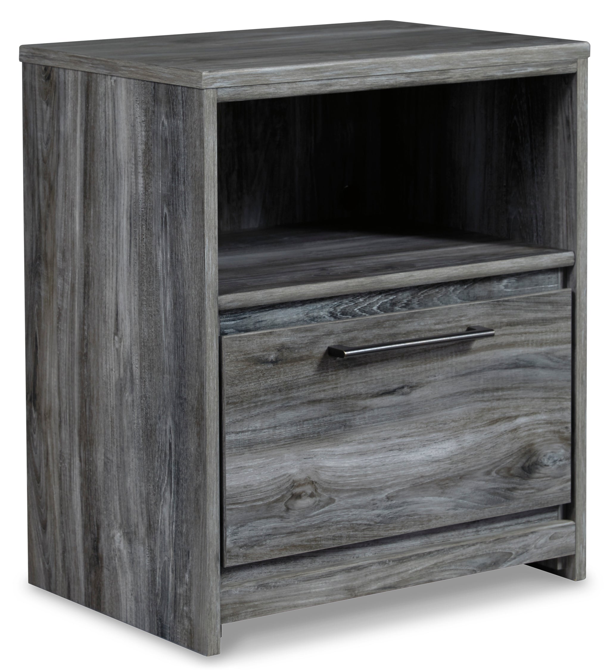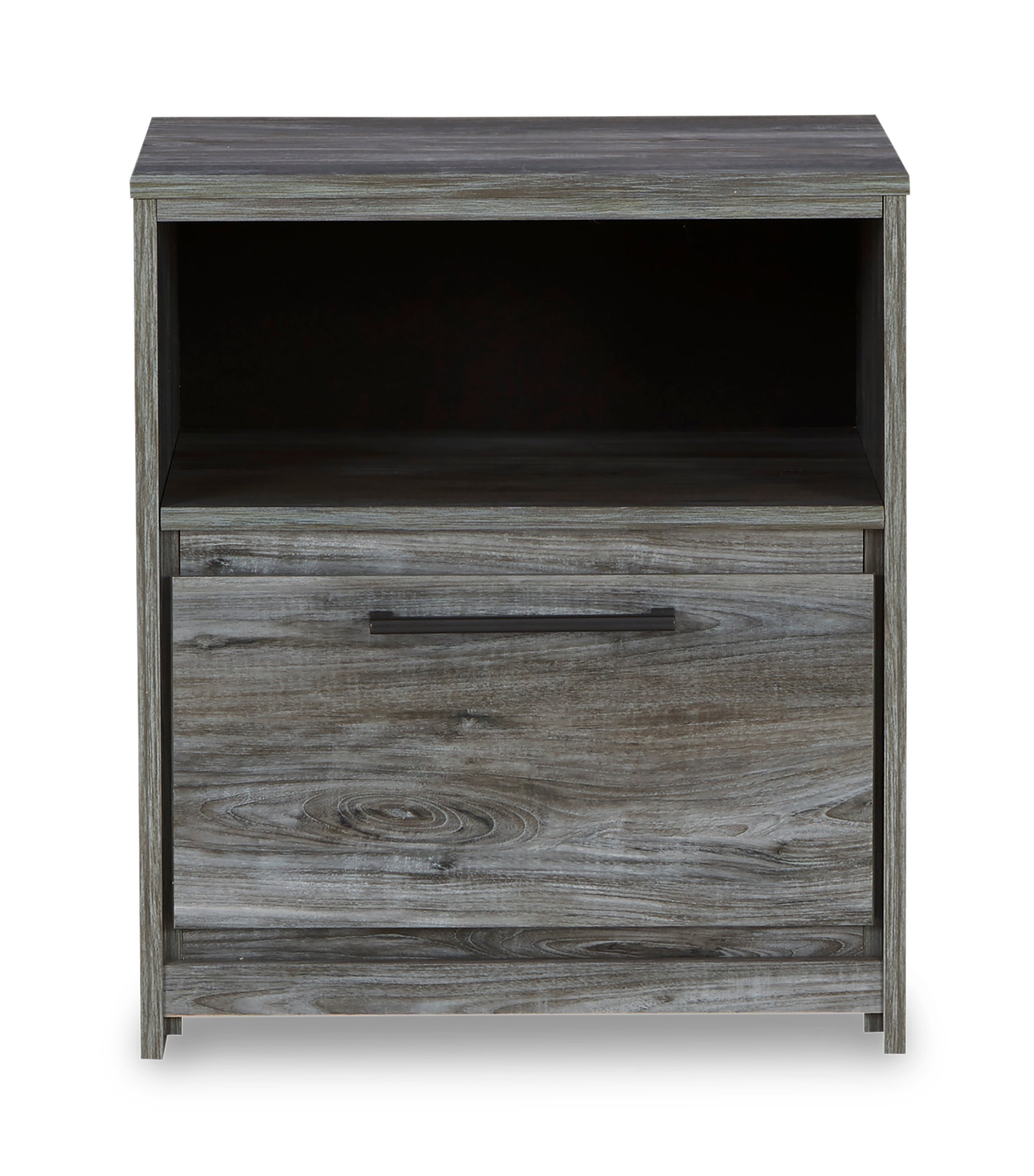 Enhance bedside functionality with this mid-century modern nightstand, crafted from pine, engineered wood, and walnut veneer for lasting durability. Featuring rounded edges, tapered legs, and a sleek silhouette, it adds...