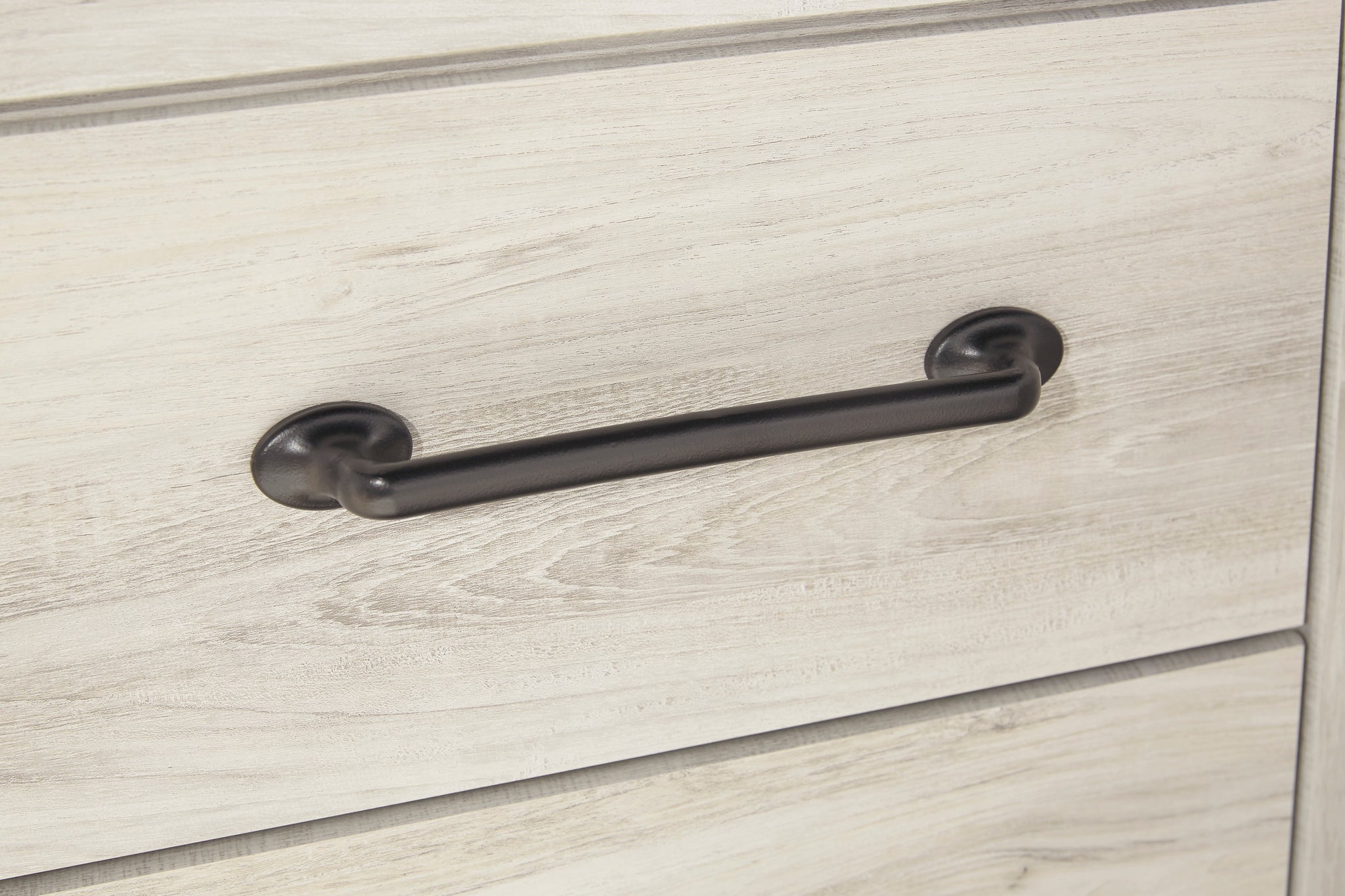 With its clean-lined look and modern attitude, this nightstand is a fresh style awakening. A warm gray hue over replicated oak grain easily complements other furniture finishes. Smooth drawer fronts...