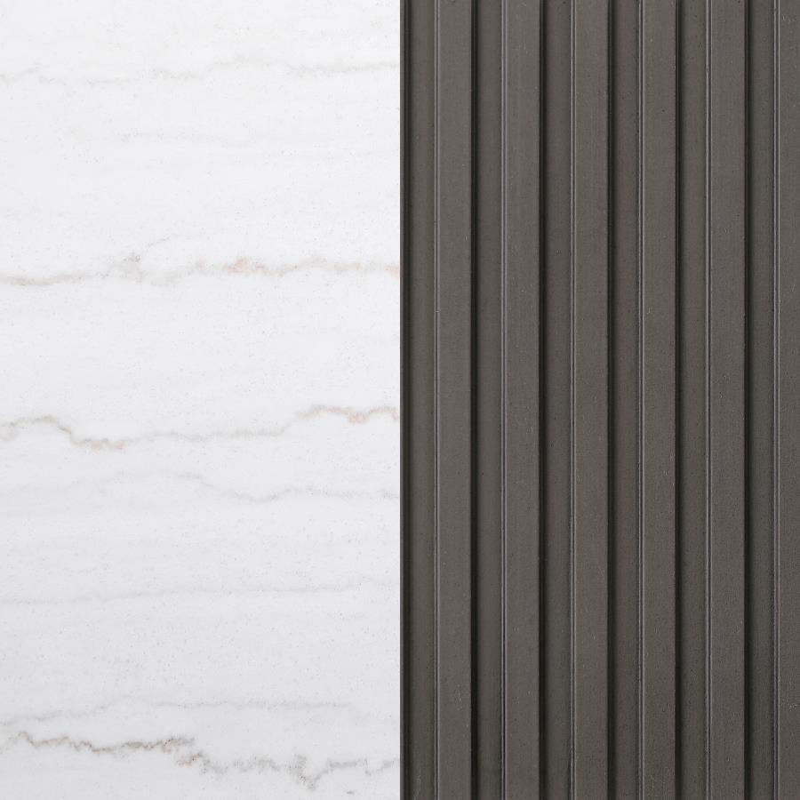 This rectangular coffee table brings sculptural structure and natural warmth to any living room. The rounded-edge tabletop rests on dual curved pedestal bases, each detailed with vertical reeding for visual rhythm and balance. Finished in a distressed light brown tone, the piece blends organic texture with architectural design. Built from engineered wood and ash veneer, this coffee table serves as a grounding focal point for contemporary and transitional spaces.